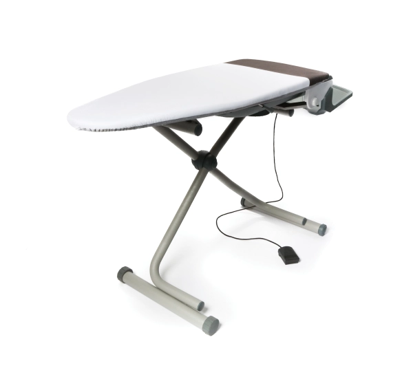 Dodatkowe opcje: blokada ułatwiająca przenoszenie i przechowywanie, deska do prasowania z funkcją zasysania i nadmuchu, gniazdo elektryczne, podgrzewany blat, schowek na akcesoria, zintegrowane koła