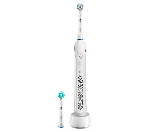DOKŁADNE CZYSZCZENIE DZIĘKI TECHNOLOGII RUCHÓW 3DOkrągła główka, otacza każdy ząb i dokładnie usuwa płytkę bakteryjną, dzięki czemu zęby są zdrowsze, a dziąsła lepiej chronione przed stanami zapalnymi. Unikalna technologia czyszczenia oscylacyjno-rotacyjno-pulsacyjna (3D) pozwala na rozbicie płytki nazębnej, ruchy rotacyjne ją wymiatają, a ruchy pulsacyjne usuwają do 100% więcej osadu niż szczoteczka manualna. * w porównaniu ze zwykłą szczoteczką manualnąDELIKATNE WYBIELANIEDelitanie wybiela zęby już od pierwszego dnia szczotkania, dzięki specjalnej nakładce polerującej. WBUDOWANY TIMERWbudowany timer powiadomi Cię, gdy upłyną 2 minuty szczotkowania, minimalnego czasu zalecanego przez dentystów.CZUJNIK SIŁY NACISKUGdy szczotkujesz zbyt mocno, czerwona dioda zaalarmuje Cię a czujnik siły nacisku natychmiast zmniejsza prędkość obrotów końcówki , by chronić Twoje dziąsła.LEPSZE NAWYKI W SZCZOTKOWANIU ZĘBÓWPoprzez nawiązywanie połączenia z aplikacją Oral-B szczoteczka Oral-B TEEN w kolorze białym pozwala korzystać z funkcji Smart Coaching. Na bieżąco przesyłając informacje zwrotne, aplikacja ta pomaga skorygować nieprawidłowe nawyki w zakresie szczotkowania, a także monitorować postępy nastolatka.PONAD DWA TYGODNIE SZCZOTKOWANIA PO JEDNYM PEŁNYM ŁADOWANIUDzięki wyposażeniu szczoteczki Oral-B TEEN w kolorze białym w najnowocześniejszy akumulator litowo-jonowy można korzystać z niej na jednym naładowaniu nawet przez ponad 2 tygodnie. Możesz zapomnieć o zabieraniu ze sobą ładowarki na wakacje!GŁÓWKA SZCZOTECZKI ZAPROJEKTOWANA PRZEZ DENTYSTÓWKońcówki Oral-B opracowano w taki sposób, by można było z łatwością dobrać je do szczoteczek. Posiadają one także specjalne cechy zapewniające doskonałe rezultaty, ponieważ wyposażono je np. we włókna zaokrąglone na końcach, które są delikatne dla dziąseł, włókna ustawione pod kątem docierające do przestrzeni międzyzębowych lub w wyjątkowo cienkie włókna pozwalające na niezwykle delikatne mycie zębów.MARKA NUMER JEDEN POLECANA PRZEZ DENTYSTÓWSzczoteczki elektryczne do zębów Oral-B powstają we współpracy z dentystami i są jedną z marek najczęściej polecanych przez dentystów na całym świecie. Dzięki Oral-B można odkryć zupełnie nowy wymiar higieny jamy ustnej!<table> <tbody> <tr> <td></td> <td> TEEN in White </td> <td> SMART 6000 </td> <td> GENIUS 8000 </td> <td> GENIUS 10000 </td> </tr> <tr> <td> Końcówki wymienne </td> <td> <p>2</p> </td> <td> <p>3</p> </td> <td> 3 </td> <td> <p>4</p> </td> </tr> <tr> <td> Okrągła główka czyści lepiej, dbając o zdrowie dziąseł w porównaniu ze zwykłą szczoteczką manualną </td> <td> <p>✓</p> </td> <td> <p>✓</p> </td> <td> ✓ </td> <td> <p>✓</p> </td> </tr> <tr> <td> Timer </td> <td> <p>✓</p> </td> <td> <p>✓</p> </td> <td> ✓ </td> <td> <p>✓</p> </td> </tr> <tr> <td> Wizualny czujnik siły nacisku </td> <td> <p>✓</p> </td> <td> <p>✓</p> </td> <td> ✓ </td> <td> <p>✓</p> </td> </tr> <tr> <td> Funkcja Smart Coaching </td> <td> <p>✓</p> </td> <td> <p>✓</p> </td> <td> ✓ </td> <td> <p>✓</p> </td> </tr> <tr> <td> Moduły </td> <td> <p>3</p> </td> <td> <p>5</p> </td> <td> 5 </td> <td> <p>6</p> </td> </tr> <tr> <td> Etui podróżne </td> <td> </td> <td> Standard </td> <td> Standard </td> <td> Funkcja ładowania USB </td> </tr> <tr> <td> Zaawansowane użytkowanie zgodne z indywidualnymi potrzebami </td> <td> </td> <td> Pierścień SmartRing </td> <td> Pierścień SmartRing </td> <td> Pierścień SmartRing </td> </tr> <tr> <td> Funkcja wykrywania położenia </td> <td> </td> <td> </td> <td> ✓ </td> <td> ✓ </td> </tr> </tbody></table>