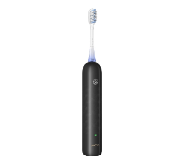 <h2>Szczoteczka elektryczna MOVA Fresh Pro (czarna)</h2><p>MOVA Fresh Pro to elektryczna szczoteczka soniczna, która łączy precyzyjne czyszczenie z możliwością dostosowania ustawień do indywidualnych potrzeb. Dzięki technologii wibracji sonicznych skutecznie usuwa płytkę nazębną, jednocześnie dbając o delikatność dla dziąseł. Regulowana intensywność pracy, dwa rodzaje wymiennych główek i integracja z aplikacją mobilną pozwalają na personalizację codziennej higieny. Dodatkowo urządzenie zostało zaprojektowane z myślą o wygodzie użytkowania – jest odporne na wodę i łatwe do utrzymania w czystości. Możesz także ładować je bezprzewodowo.</p> <h2>Skuteczne czyszczenie</h2><p>Szczoteczka elektryczna MOVA Fresh Pro wykorzystuje połączenie sonicznych wibracji i precyzyjnych ruchów włosia w czterech kierunkach, zapewniając dokładne usuwanie płytki nazębnej nawet z trudno dostępnych miejsc. Dzięki zastosowaniu silników serwo i krokowego szczoteczka pracuje zgodnie z zaleceniami Amerykańskiego Towarzystwa Stomatologicznego (ADA), skutecznie czyszcząc przestrzenie wzdłuż linii dziąseł oraz w zagłębieniach przydziąsłowych. Funkcja szybkiego czyszczenia pozwala na efektywne usunięcie osadów w ciągu jednej minuty.</p> <h2>Personalizacja czyszczenia</h2><p>Urządzenie współpracuje z dedykowaną aplikacją, która umożliwia regulację intensywności wibracji w 10-stopniowej skali, dostosowując siłę działania do indywidualnych potrzeb użytkownika. Aplikacja monitoruje także nawyki higieniczne, generując raporty i dostarczając spersonalizowane rekomendacje, które pomagają poprawić skuteczność codziennego szczotkowania.</p> <h2>Wymienne główki</h2><p>Dwie wymienne główki pozwalają dostosować sposób czyszczenia. Jedna z nich przeznaczona jest do delikatnego szczotkowania i ochrony wrażliwych zębów, a druga wspomaga redukcję przebarwień. Włosie o zaokrąglonych końcówkach (95%) oraz cienkie włókna o średnicy 0,02 mm umożliwiają skuteczne czyszczenie przestrzeni międzyzębowych i usuwanie powierzchniowych osadów.</p> <h2>Praktyczna konstrukcja</h2><p>Obudowa szczoteczki została zaprojektowana tak, aby ograniczyć osadzanie się wilgoci i bakterii. Powierzchnia urządzenia pokryta jest nanotechnologiczną powłoką odporną na zabrudzenia i wodę, co ułatwia czyszczenie. Dodatkowo odpowiednia konstrukcja dolnej części umożliwia prawidłową cyrkulację powietrza, ograniczając ryzyko powstawania pleśni.</p> <h2>Inteligentna kontrola nacisku</h2><p>Wbudowany system kontroli nacisku chroni zęby i dziąsła przed nadmiernym obciążeniem. Jeśli siła szczotkowania jest zbyt duża, pierścień świetlny zmienia kolor na czerwony, a szczoteczka automatycznie dostosowuje intensywność wibracji, aby zapobiec potencjalnym uszkodzeniom szkliwa i podrażnieniom dziąseł.</p> <h2>Ładowanie bez kabli</h2><p>Model MOVA Fresh Pro obsługuje bezprzewodowe ładowanie indukcyjne, dzięki czemu jego użytkowanie jest wygodne i intuicyjne. Wystarczy umieścić szczoteczkę na bazie ładującej, aby rozpocząć ładowanie.</p>