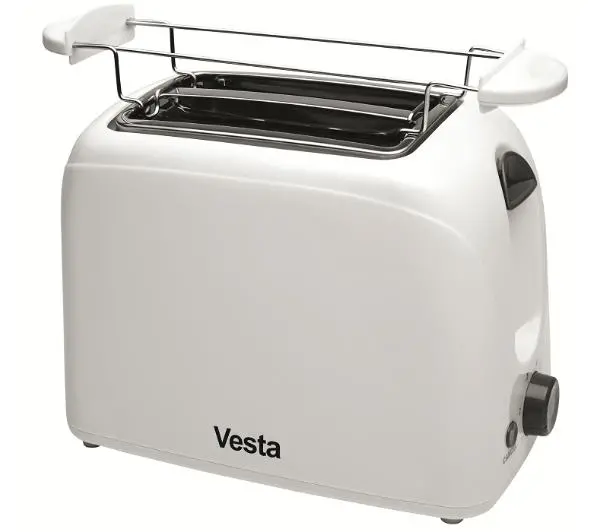 Toster VESTA ETM01 to produkt posiadający nienagrzewającą się obudowę z tworzywa sztucznego. Moc maksymalna 800 W zapewnia szybkie przygotowanie tostów. <ul> <li>6 stopniowa regulacja opiekania - dzięki niej można dopasować stopień zarumienienia i chrupkości pieczywa.</li> <li>Funkcja CANCEL umożliwia szybkie przerwanie procesu opiekania pieczywa.</li> <li>Tacka na okruchy - zapewnia wygodę użytkowania oraz utrzymanie czystości.</li> <li>Ruszt do opiekania bułek - w łatwy i szybki sposób można opiec lub podgrzać bułki, rogaliki lub gotowe kanapki.</li></ul>