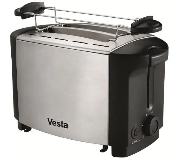 Toster VESTA ETM02 to produkt posiadający stalową obudowę. Moc maksymalna 800 W zapewnia szybkie przygotowanie tostów. <ul> <li>6 stopniowa regulacja opiekania - dzięki niej można dopasować stopień zarumienienia i chrupkości pieczywa.</li> <li>Funkcja CANCEL umożliwia szybkie przerwanie procesu opiekania pieczywa.</li> <li>Tacka na okruchy - zapewnia wygodę użytkowania oraz utrzymanie czystości.</li> <li>Ruszt do opiekania bułek - w łatwy i szybki sposób można opiec lub podgrzać bułki, rogaliki lub gotowe kanapki.</li></ul>