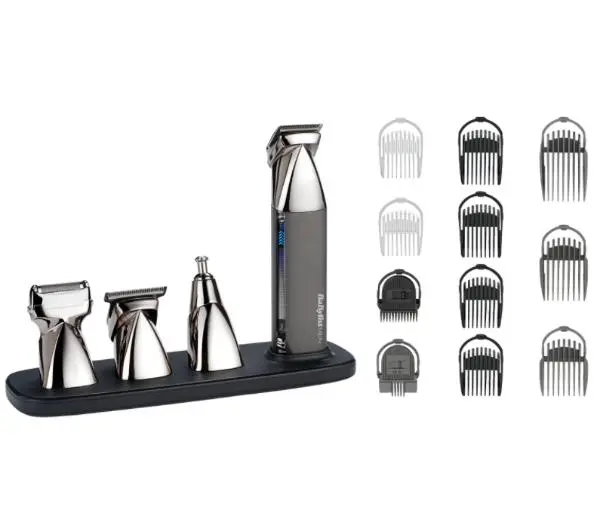 <p>super-x metal</p><p>15 W 1 MULTI-TRYMER</p><h2>Multi-trymer MT996E</h2><p>Wielofunkcyjny trymer BaBylissMEN z linii Super-X Metal idealnie nadaje się do przycinania i modelowania zarostu oraz tworzenia własnego stylu, przy jednoczesnej pielęgnacji. Ten profesjonalny bezprzewodowy trymer z akumulatorem litowo-jonowym został stworzony z myślą o doskonałym przycinaniu i pielęgnacji włosów przy każdym użyciu.</p><h2>Doskonała wydajność</h2><p>Precyzyjne ostrza ze stali japońskiej sprawią, że łatwo osiągniesz profesjonalne efekty strzyżenia.</p><h2>Akumulator litowo-jonowy</h2><p>Duża moc akumulatora litowo-jonowego zapewnia 5 godzin pracy już po 3 godzinach ładowania.</p><h2>Zaawansowany wyświetlacz cyfrowy</h2><p>Duża moc akumulatora litowo-jonowego zapewnia 5 godzin pracy już po 3 godzinach ładowania.</p><h2>Wodooporny</h2><p>100% wodoodporny - do strzyżenia na mokro i na sucho oraz do łatwego czyszczenia.</p><h2>4 wymienne głowice tnące</h2><p>Szeroki trymer, trymer precyzyjny, trymer do nosa i golarka foliowa.</p> <p>Ustawienia długości cięcia</p><p>Wybierz długość cięcia jednym kliknięciem spośród 11 możliwych ustawień nasadek grzebienia.</p><p>Nasadka do zarostu 1-3,5 mm, Nasadka do brody 5, 6, 7, 8 mm, Nasadka do ciała 3, 4 mm,</p><p>Nasadka do brwi 3-5 mm,</p><p>Nasadka do włosów 9, 12, 16 mm</p><p>Technologia MagFix™</p><p>MagFix ™ to magnetyczny system łatwego oraz bezpiecznego utrzymywania nasadek na miejscu, ułatwia ich zakładanie i zdejmowanie.</p><p>Podstawka ładująca</p><p>Kompaktowa podstawka do ładowania maszynki oraz jej bezpiecznego przechowywania wraz z nasadkami z systemu MagFix™.</p><p>Solidny metalowy uchwyt</p><p>Solidny metalowy uchwyt wyróżnia się niezawodnością i nieprzeciętną wytrzymałością.</p>