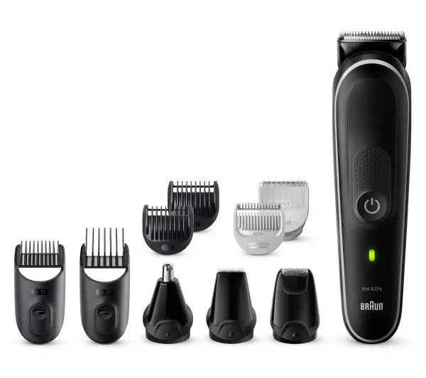 Wyposażenie: 7 nasadek, grzebień do zarostu, minigolarka, minitrymer, nasadka goląca, trymer precyzyjny, zasilacz