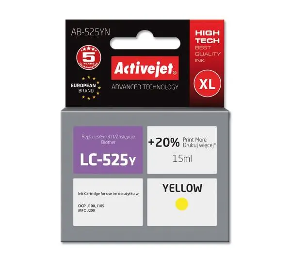 Tusz ActiveJet AB-525YN (zamiennik LC525Y) Żółty 15 ml