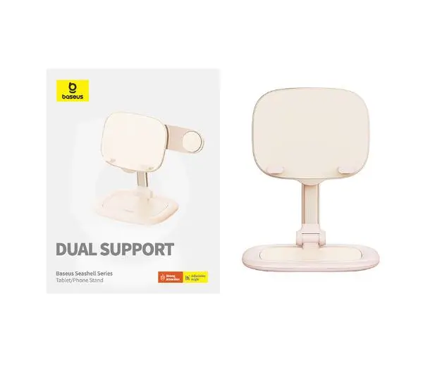 <h2>Stojak na tablet/telefon Baseus Seashell (różowy)</h2><p>Basues Seashell to praktyczny stojak, które znajdzie zastosowanie w wielu sytuacjach. Z powodzeniem wykorzystasz go podczas wideokonferencji, oglądania ulubionych seriali, nauki czy treningów w domu. Zapewnia miejsce dla tabletu i iPhone'a, co pozwala na korzystanie z dwóch urządzeń w tym samym czasie. Dzięki możliwości regulacji kąta nachylenia i wysokości bez trudu dostosujesz go do swoich oczekiwań.</p> <h2>Stworzony z myślą o iPhone’ach</h2><p>Nie musisz się martwić o bezpieczeństwo swojego iPhone'a. Baseus Seashell wyposażono w magnetyczny uchwyt z 16 magnesami N52 o łącznej sile 11 N, co gwarantuje niezbędną stabilność. Uchwyt współpracuje z iPhone’ami z serii 12 i nowszymi. Co więcej, możesz regulować jego położenie zarówno w górę, jak i w bok.</p> <h2>Kompatybilny z Twoim tabletem</h2><p>Uchwyt Baseus jest kompatybilny z wszystkimi rodzajami tabletów, w tym iPadami Pro/Mini i wieloma innymi modelami. Pozwala na korzystanie z urządzenia zarówno w poziomie, jak i w pionie, a także umożliwia dostosowanie wysokości w zakresie od 30 do 150 mm oraz kąta nachylenia (90°).</p> <h2>Konstrukcja na miarę Twoich potrzeb</h2><p>Teraz możesz cieszyć się wygodą, bez obaw o bezpieczeństwo swoich urządzeń. Uchwyt posiada dużą podstawę z obciążeniem, która gwarantuje stabilność całej konstrukcji. Silikonowe elementy na spodniej stronie zapobiegają przesuwaniu się uchwytu po powierzchni blatu. Co więcej, uchwyt na smartfon możesz schować w dowolnym momencie, a podstawa pozwala na przechowywanie drobnych akcesoriów, takich jak bezprzewodowe słuchawki czy smartwatch.</p>