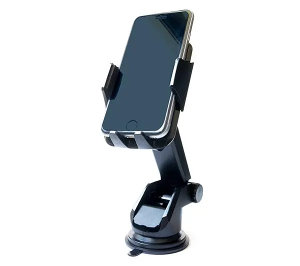Informacje dodatkowe: Mocowanie do szyby za pomocą mocnej przyssawki, zaciski wyposazone w ochronę anty poslizgową, przycisk wspomagający regulację ramienia.