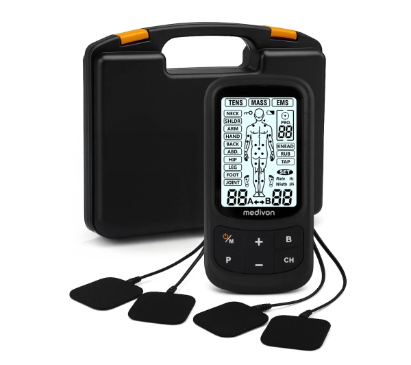 - Funkcje dodatkowe: automatyczne wyłączenie, funkcja ogrzewania, łagodzenie bólu, pobudzanie krążenia krwi, prądy TENS i EMS, sterowanie pilotem, timer