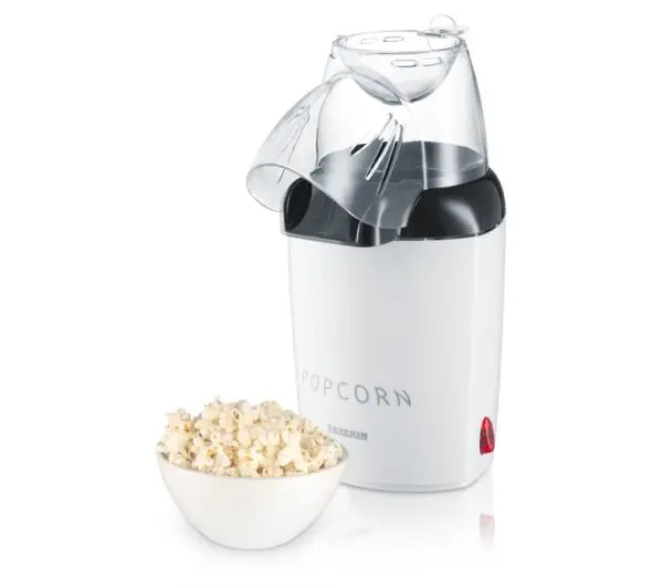 Popcorn automat PC 3751 (biały)Moc: ok. 1200 W<ul> <li>przygotowuje popcorn gorącym powietrzem w około 2,5 minuty</li> <li>przeźroczysta pokrywa z pojemnikiem do zasypywania</li> <li>włącznik 0 - 1</li> <li>antyślizgowe nóżki</li></ul>
