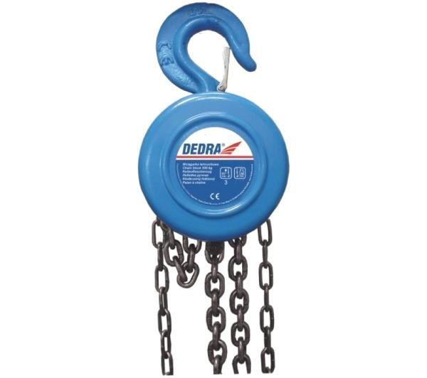 Wciągarka łańcuchowa DED7903 Wciągnik łańcuchowy jest produktem zaprojektowanym do unoszenia w pionie za pomocą mięśni ludzkich, przedmiotów o wadze zadeklarowanej w danych technicznych i odpowiedniej do modelu wciągnika Dane techniczne:<ul> <li>Wysokość podnoszenia: 3m</li> <li>Udźwig: 2000kg</li> <li>Masa urządzenia: 12,4kg</li></ul>