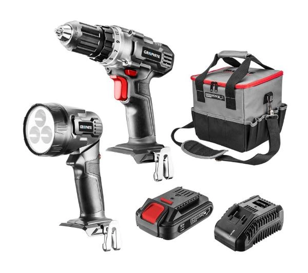 <h3>Zestaw GRAPHITE Energy+ 58G016</h3>Zestaw Energy+ jest bardzo uniwersalny i zawiera podstawowe elementy, niezbędne do rozpoczęcia pracy z tym systemem.W skład zestawu GRAPHITE Energy+ wchodzą: wiertarko-wkrętarka 58G000, latarka 58G007, akumulator 2.0Ah 58G002, ładowarka 58G001 oraz torba na elektronarzędzia 58G015.Taki zestaw można rozbudować o kolejne elektronarzędzia z serii GRAPHITE Energy+ takie jak: szlifierka kątowa, szlifierka mimośrodowa, młotowiertarka, zakrętarka, pilarka tarczowa czy wyrzynarka. Dodatkowo można wyposażyć się w akumulator o pojemności 4.0Ah.Wszystko to, w dowolnej konfiguracji, wraz z akcesoriami i innymi narzędziami można transportować w wygodnej, kompaktowej torbie.