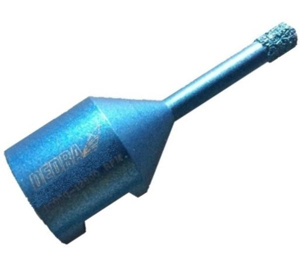 Koronka diamentowa Vacuum Brazed. Technologia lutowania próżniowego (vacuum brazed) polega na zespoleniu syntetycznych diamentów do korpusu narzędzia za pomocą lutu (na bazie mosiądzu). Takie połączenie gwarantuje dużą czystość, wytrzymałość połączenia ziaren diamentu z osnową i korpusem. Brak lutowanych, czy spawanych laserowo elementów (segmentów diamentowych), które mogą zostać oderwane od korpusu podczas pracy, zapewniają bezpieczeństwo pracy narzędziem. Koronka Vacuum Brazed mogą być przeznaczone do pracy na sucho a zakres obejmuje obróbkę materiałów takich jak: ceramiki , beton, cegła, szkło, asfalt, laminat, PCV, stal, metale nieżelazne, drewno itp. Zastosowany gwint M14 pozwala na pracę z wykorzystaniem szlifierki kątowej.Dane techniczne:<ul> <li>Rozmiar całkowity: 60mm</li> <li>Rozmiar roboczy: 40mm</li> <li>Średnica: 10mm</li></ul>