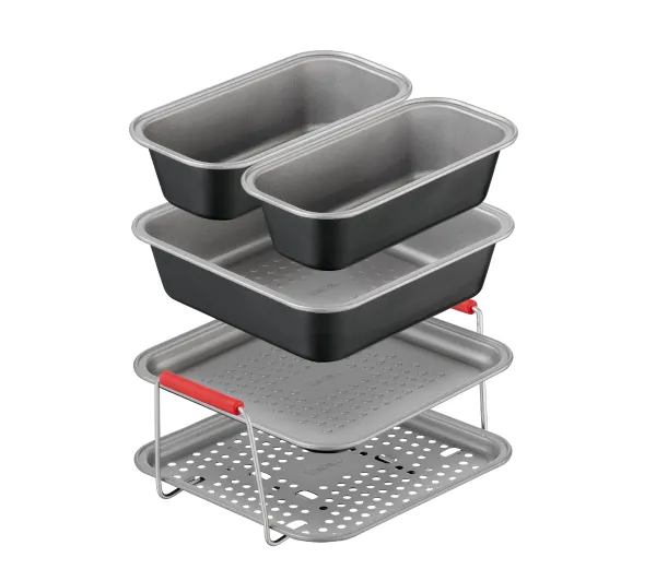 Wyposażenie: 2 formy keksówki, 2 tace, forma do ciasta