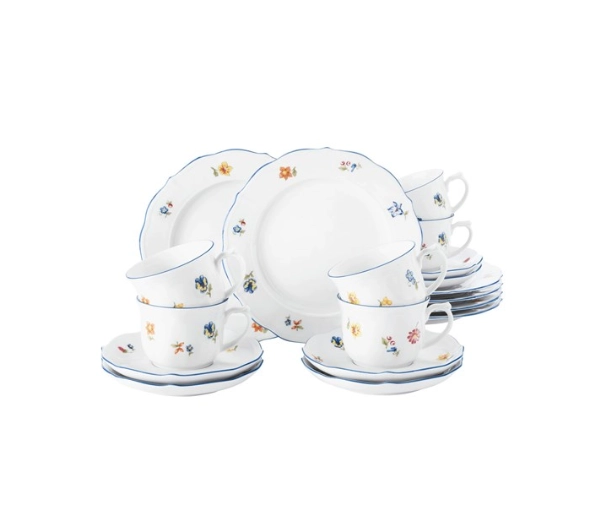 Zawartość: 6 x spodek, 6 x talerz deserowy, 6 x filiżanka