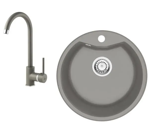 Zlewozmywak Deante Fiesta Solis ZRSBS803 Szary metaliczny + bateria stojąca Szary