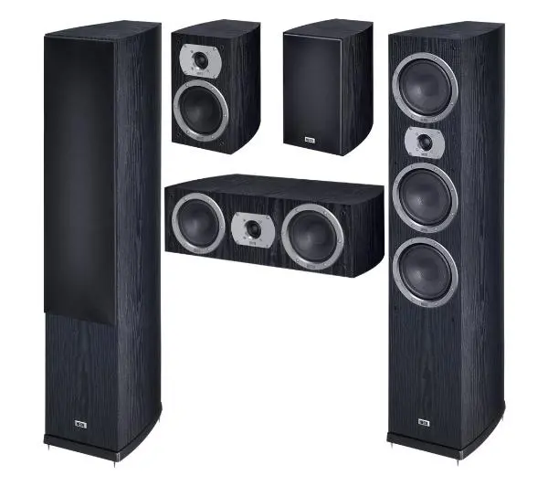 Skład zestawu: 2x głośnik przedni, 2x głośniki surround, głośnik centralny