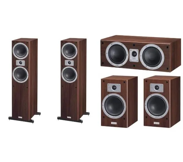 Skład zestawu: 2x głośnik przedni, 2x głośniki surround, głośnik centralny