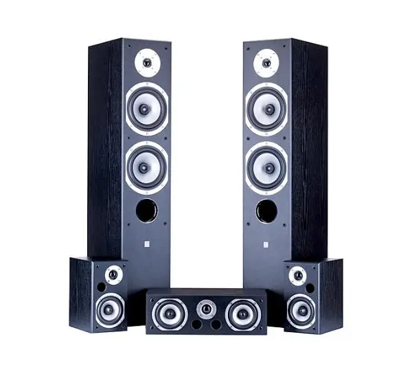 Skład zestawu: 2x głośnik przedni, 2x głośniki surround, głośnik centralny