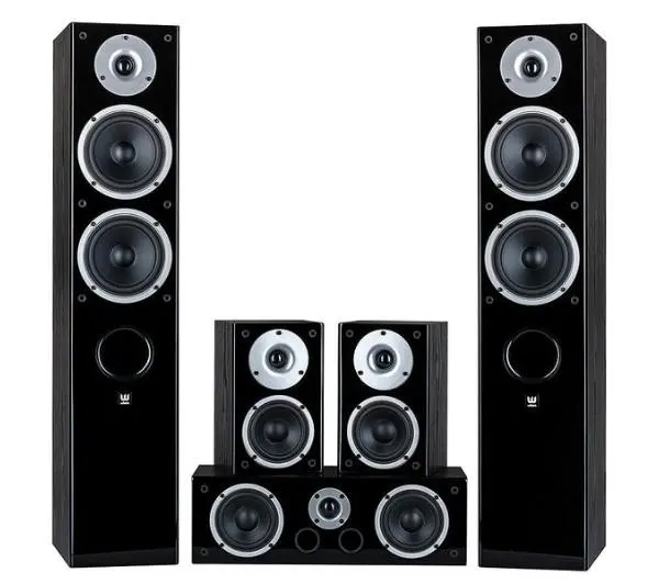 Skład zestawu: 2x głośnik przedni, 2x głośniki surround, głośnik centralny
