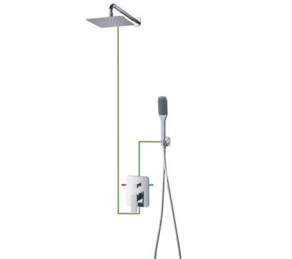 : deszczownica, słuchawka prysznicowa, wąż prysznicowy, uchwyt prysznicowy, bateria, ramię natrysku