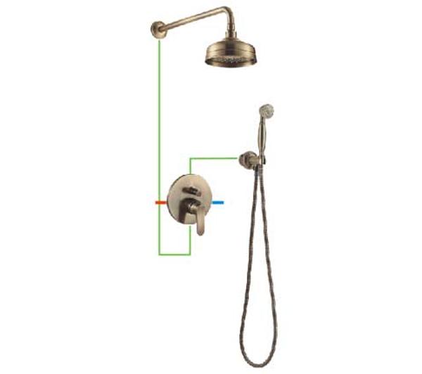 : deszczownica, słuchawka prysznicowa, wąż prysznicowy, uchwyt prysznicowy, bateria, ramię natrysku