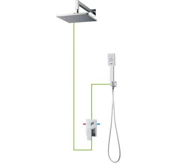 : deszczownica, słuchawka prysznicowa, wąż prysznicowy, uchwyt prysznicowy, bateria, ramię natrysku