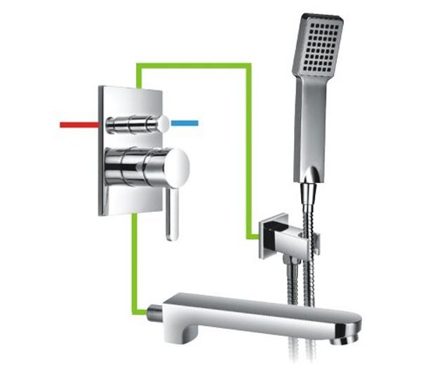 : słuchawka prysznicowa, wąż prysznicowy, bateria, wylewka, uchwyt z przyłączem kątowym