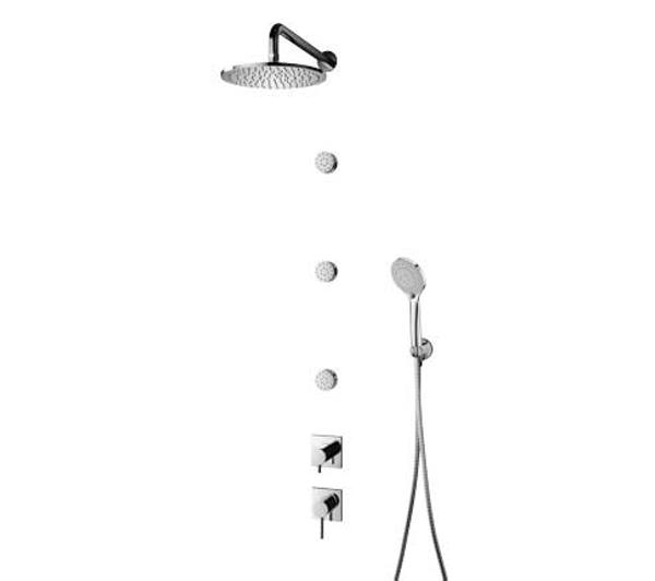 : deszczownica, słuchawka prysznicowa, wąż prysznicowy, bateria, ramię natrysku, dysza/dysze prysznicowe