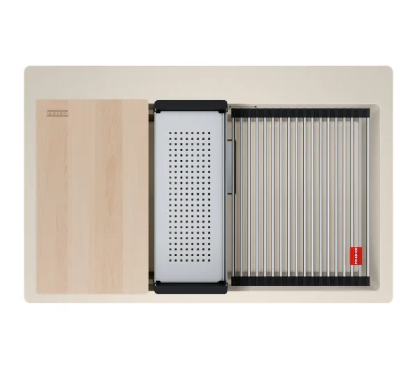 Akcesoria: deska kuchenna, rollmata, wkładka ociekowa, korek zatyczkowy