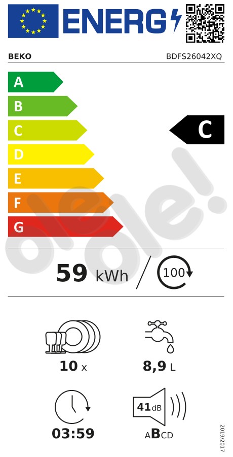 59,6 x 85 x 60 cm - Zużycie prądu (100 cykli):