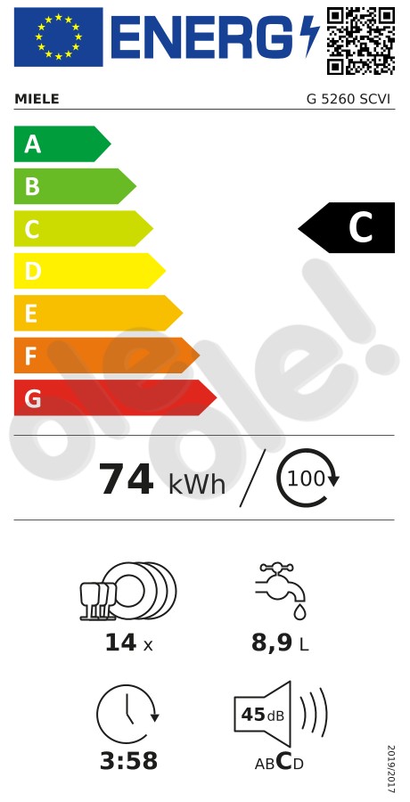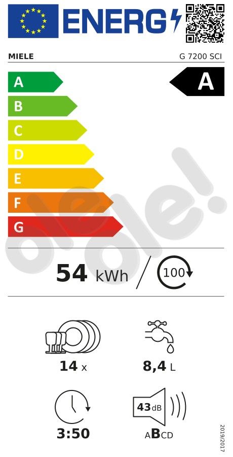 9 kpl. / 7,1 litra - Zużycie prądu (100 cykli):
