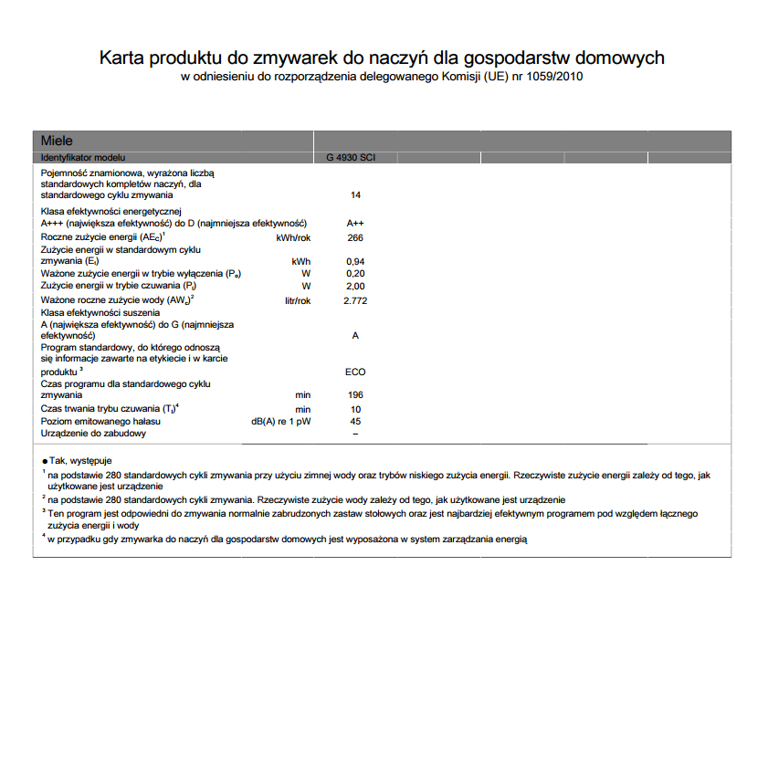 Zmywarka Miele G 4930 Sci